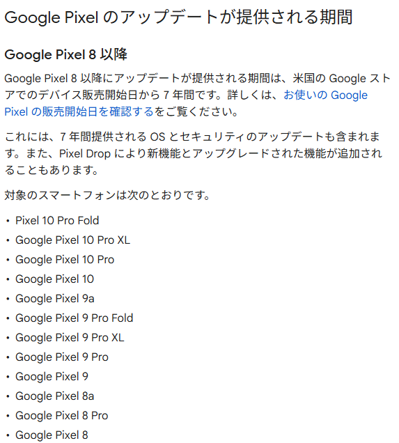 Google Pixel にソフトウェア アップデートが提供されるタイミングから引用