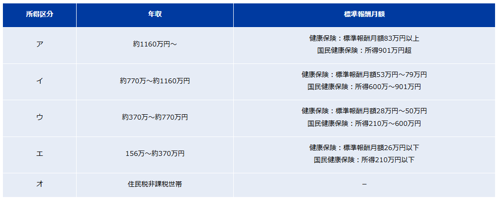 所得区分アの年収1,160万円以上からオの非課税世帯まで5区分に分類されて、この所得区分がマイナ保険証を使用すると表示されるようです。