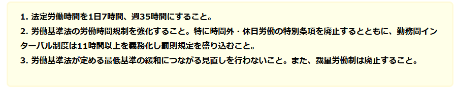 経営者とは反対に、労組側は労働時間を1日7時間に減らして欲しいという要望を出しています。