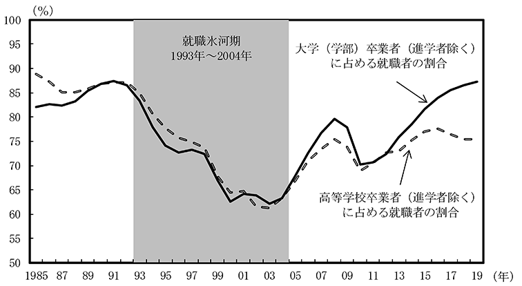 今年の2月時点の内定率は92%で過去3番目の高水準だったらしいので、それに比べれば当時がいかにウ〇コな状況だったかが分かります。
