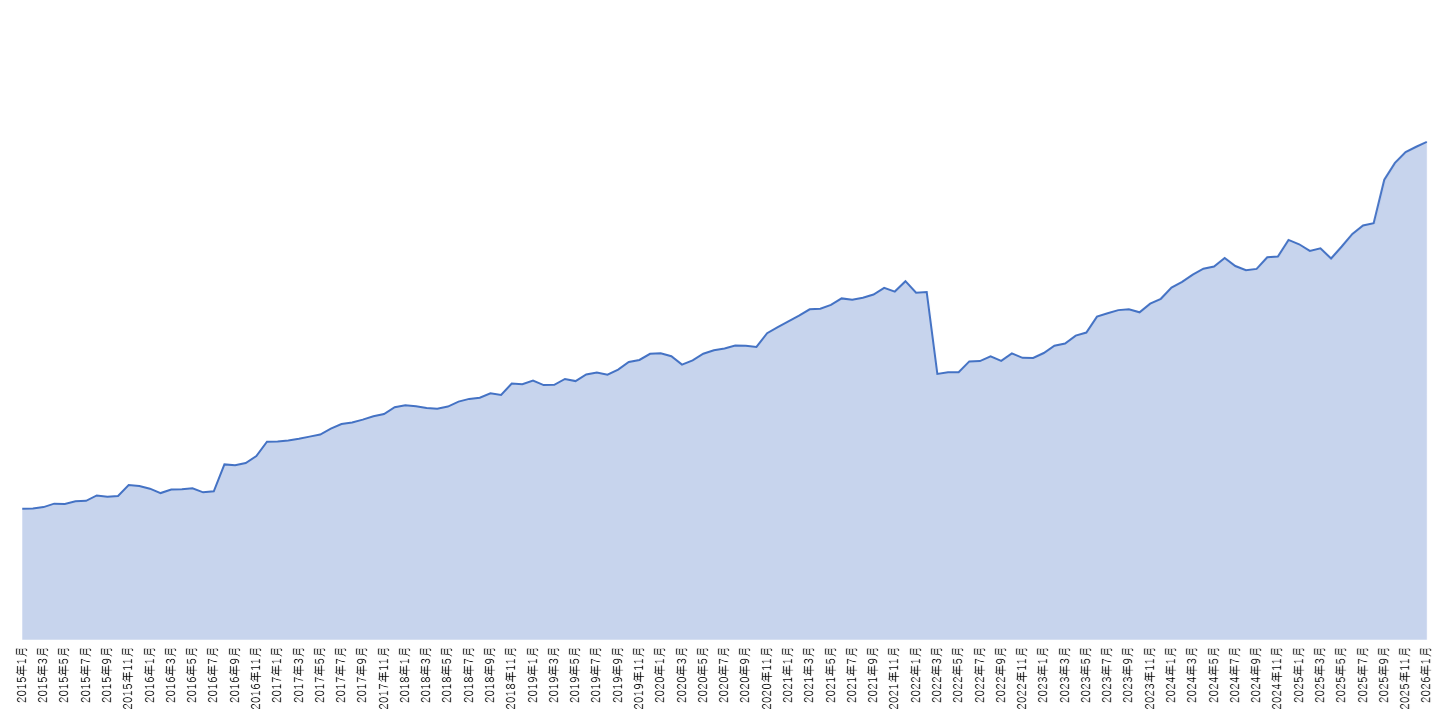 2026年1月の上海総合指数は月初始値3,986.97ポイント、月末終値が4,117.94ポイントのプラス130.97ポイント、前月比では3.76%の上昇でした。