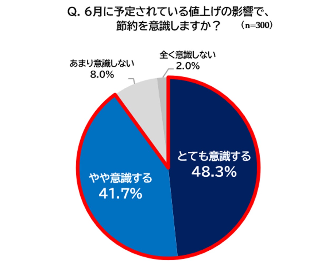 調査結果では、節約を意識するのはとても意識する48.3%、やや意識する41.7%の90%が意識するという結果になったようです。意識する節約の中身は食費72.6%、光熱費60.4%と値上がりが顕著な部分に対する節約を意識しているようです。