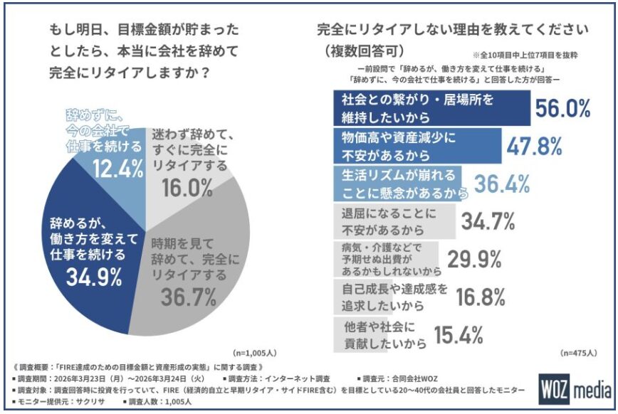 FIREする前から完全リタイアしないって人が約半数も居ます。